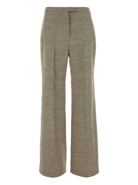 beige silk-cashmere blend front concealed fastening rear jetted pockets wide leg