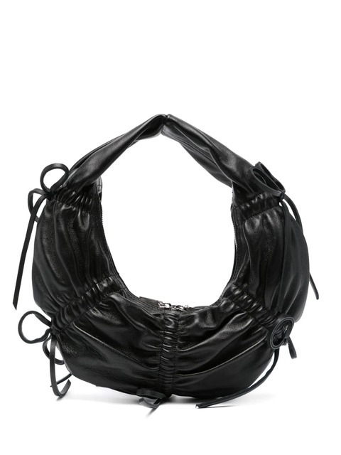 black calf leather smooth grain bow detailing gathered detailing two-way zip fastening cut-out top handle main compartment internal logo patch silver-tone hardware