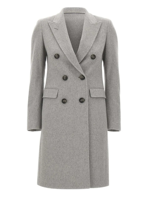 grey peak lapel double breasted front flap pockets buttoned cuffs