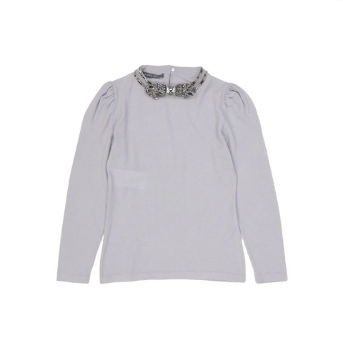 – Composition: 100% Virgin wool – Long sleeves – Round neck – Dry clean – Back button closure – Crystal embellishment – Balloon sleeves – Made in Italy – Gender: WOMEN –