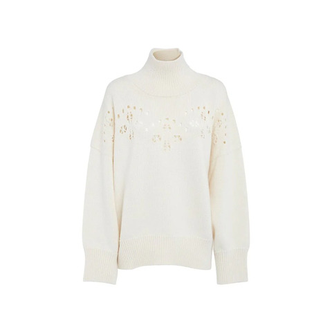 – Composition: 100% Wool – Long sleeves – Ribbed trims – Hand wash – High neck – Pointelle knit – Perforated detailing – Drop shoulder – Bishop sleeves – Made in Italy – Gender: WOMEN –