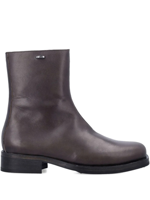 brown zip fastening block heel logo detail round toe flat sole Vibram outsole
