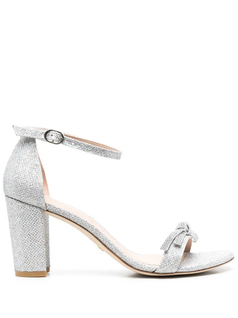 silver-tone calf leather leather lining glitter detailing branded insole bow detailing open toe buckle-fastening ankle strap high block heel