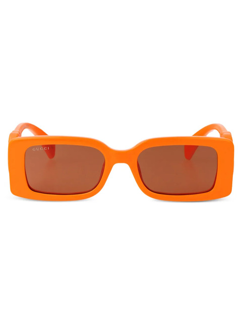 orange acetate signature Double G logo rectangle frame tinted lenses straight arms angled tip These glasses come with a protective case.