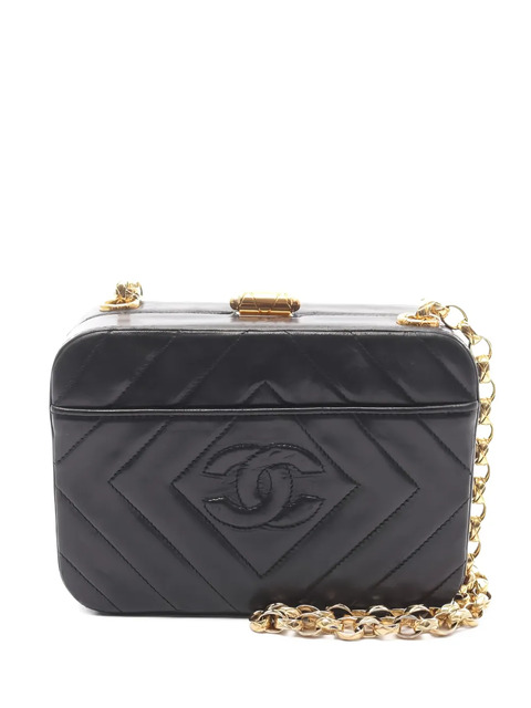 1994-1996 black lambskin diamond stitch coco mark gold-tone hardware chain shoulder strap