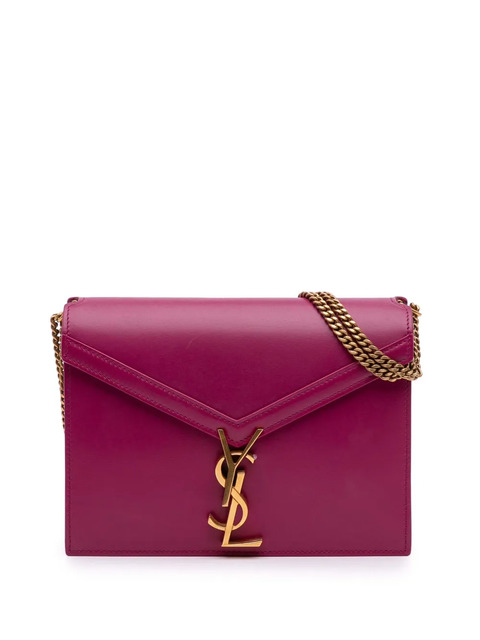 leather body chain link strap front flap with metal YSL logo and magnetic closure interior zip and slip pockets purple Serial Number: MAL532750-0119 Inclusions: dust bag. Condition: EXCELLENT. This previously owned item is in near-perfect condition with no signs of damage or use. Please refer to the photos on this product page for a detailed view of the item, including any damages declared.