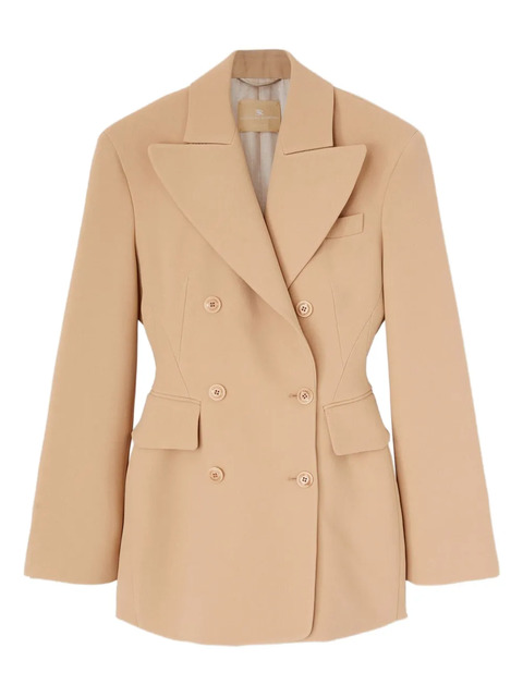 beige double-breasted peaked lapels front flap pockets button fastening long sleeves
