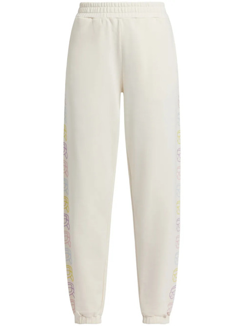off-white organic cotton embroidered logo to the side elasticated waistband tapered leg two side inset pockets elasticated ankles