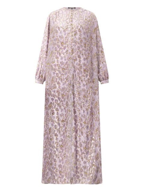 lilac pink jaguar skin print button fastening long sleeves round neck floor length