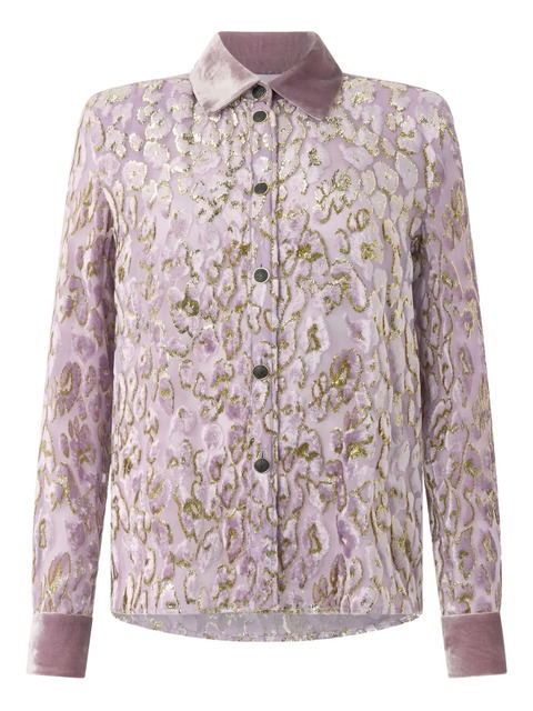 lilac pink jaguar skin print velvet collar button fastening long sleeves velvet cuffs