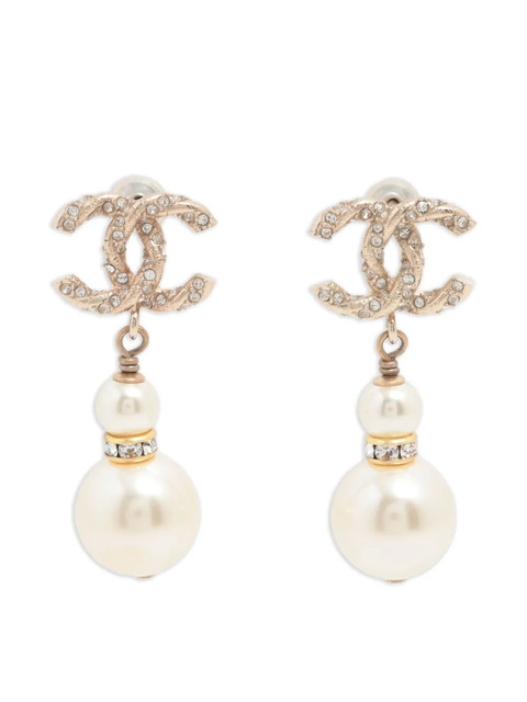 2018 gold-tone cc mark pearl detail post-back fastening for pierced ears metal detail These earrings come as a pair. Condition: GOOD. This previously owned and used item is in good condition with minimal signs of use. This may include fading of material or plating and scratches. Normal everyday use and external agents may reduce the lustre of gemstones and gold surfaces. To maintain, use specific, non-abrasive products specially meant for cleaning jewellery.