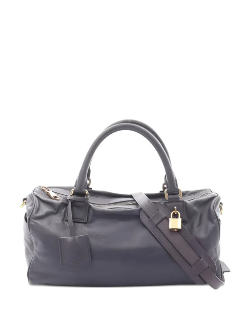 2000s purple grey leather gold-tone hardware top handles detachable shoulder strap zip top fastening padlock detail
