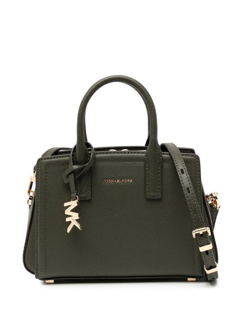 olive green concealed magnetic fastening two top handles adjustable detachable shoulder strap embossed logo to the front