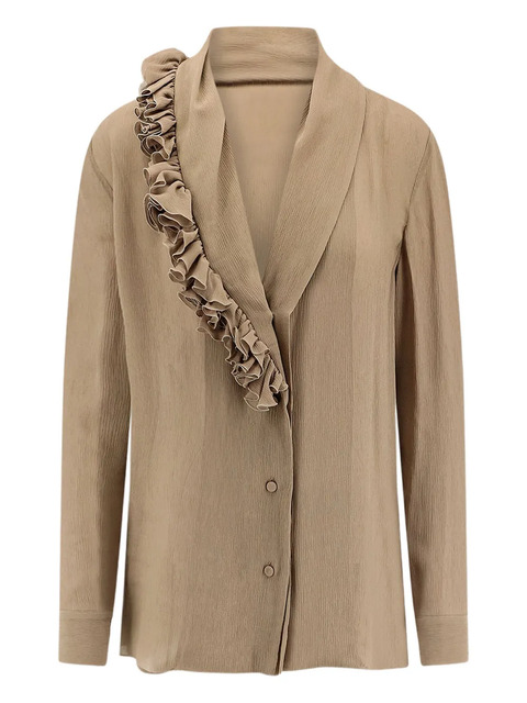 beige V-neck ruffled detail button fastening long sleeves buttoned cuffs