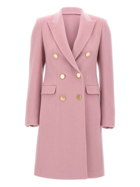 pink peak lapels double-breasted closure gold-tone buttons front flap pockets buttoned cuffs centre back vent