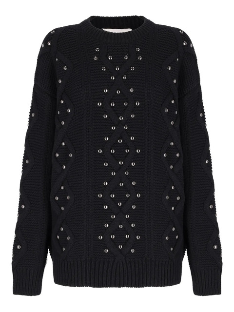 black cable knit round neck long sleeves stud embellishment ribbed hem