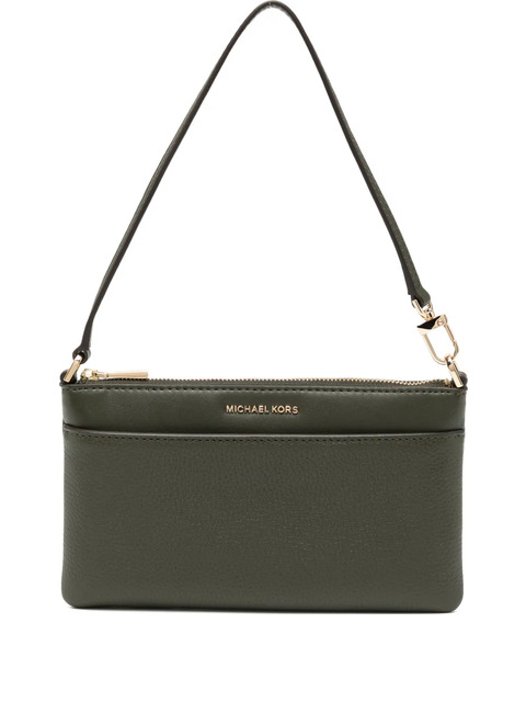 olive green top zip fastening single shoulder strap main compartment silver-tone logo lettering