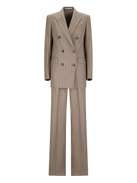 light brown pinstripe pattern double-breasted button fastening long sleeves wide peak lapels
