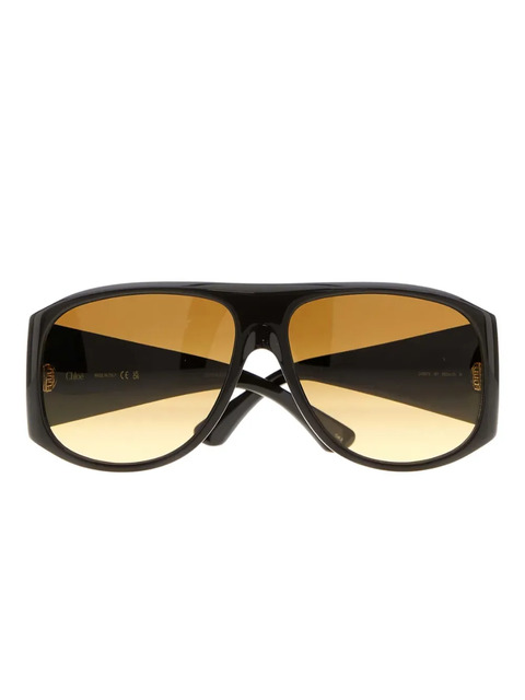 black acetate oversize frame gradient lenses logo detail curved tips These glasses come with a protective case.