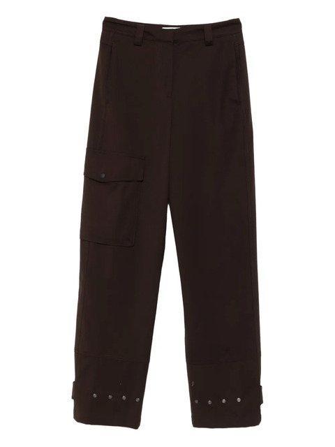 cedar brown side flap pocket studded detailing belt loops button closure tonal stitching