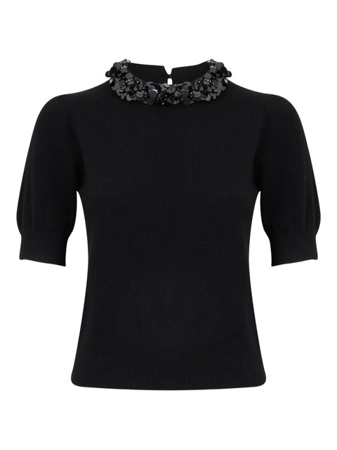 black round neck sequin embellishment short sleeves button fastening at the rear