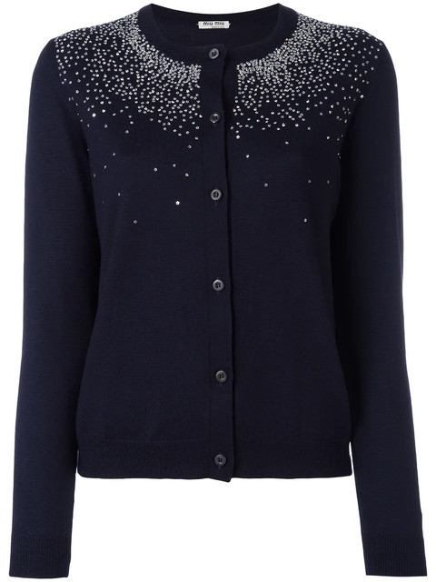 Blue virgin wool sequin stars cardigan from Miu Miu.