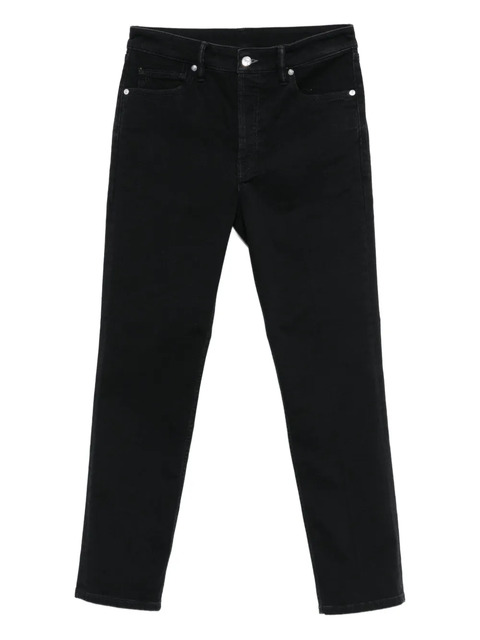black tonal stitching belt loops classic five pockets concealed fly and button fastening