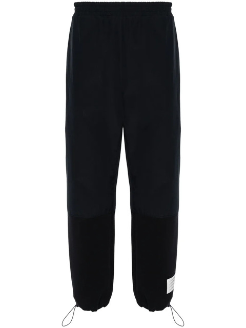 navy blue ripstop texture panelled design jersey panel logo patch to the front signature grosgrain loop tab tapered leg mid-rise elasticated waistband two diagonal pockets to the sides rear flap pocket drawstring hem