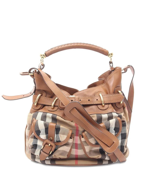 2000s beige House Check pattern leather trim top handle detachable shoulder strap two front pockets