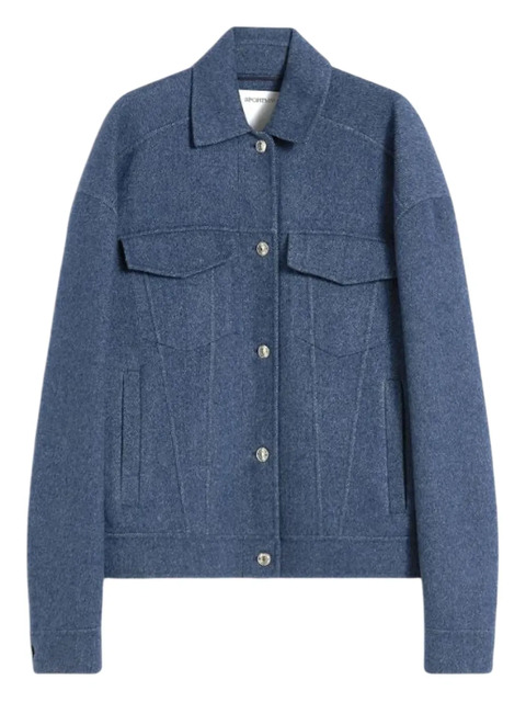 blue metal buttons flap pockets shirt collar vertical seams double-layer