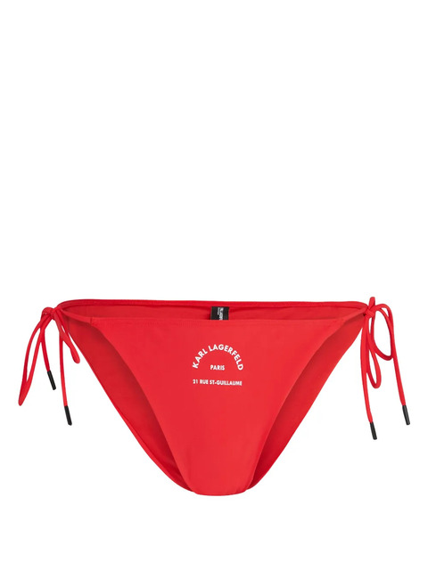 bright red recycled polyamide blend jersey texture signature Rue St Guillaume address print side-tie bottoms Be mindful to try on swimwear over your own garments.