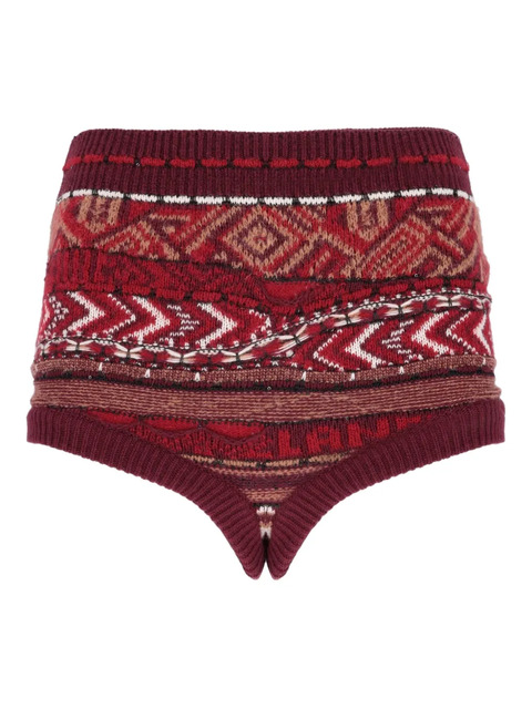 red geometric pattern fair isle pattern contrasting stitching ribbed waistband