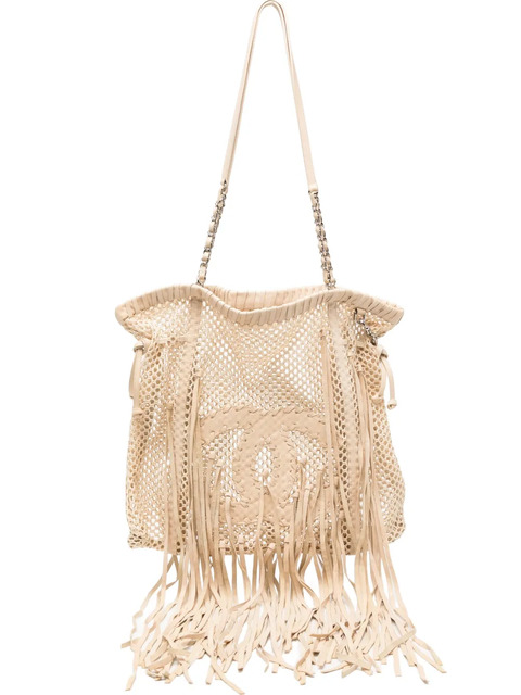 CHANEL Pre-Owned Resort 2011 Fringe Crochet Woven Mesh Large Leather Tote - 31850858 (LPN353765)