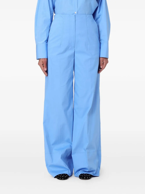 light blue high-waisted seam detailing wide leg concealed fastening welt pocket