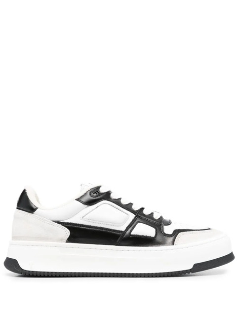 black/white calf leather embroidered logo to the rear two-tone design round toe front lace-up fastening logo patch at the tongue branded insole rubber sole