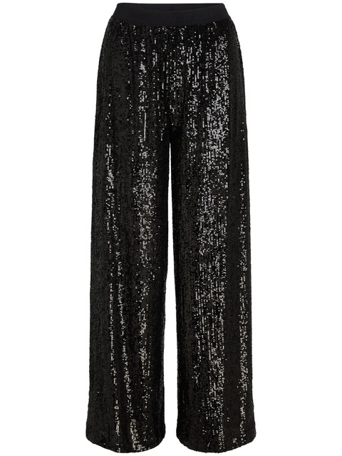 black stretch-jersey sequin design elasticated logo waistband two side inset pockets wide leg
