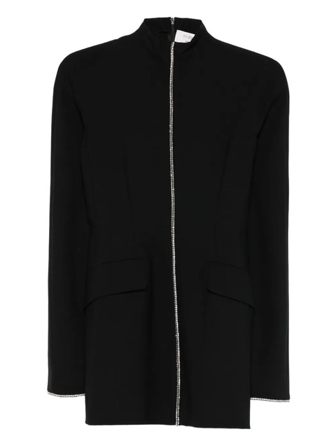 black zip fastening front pockets high neck long sleeves embellishment at the cuffs