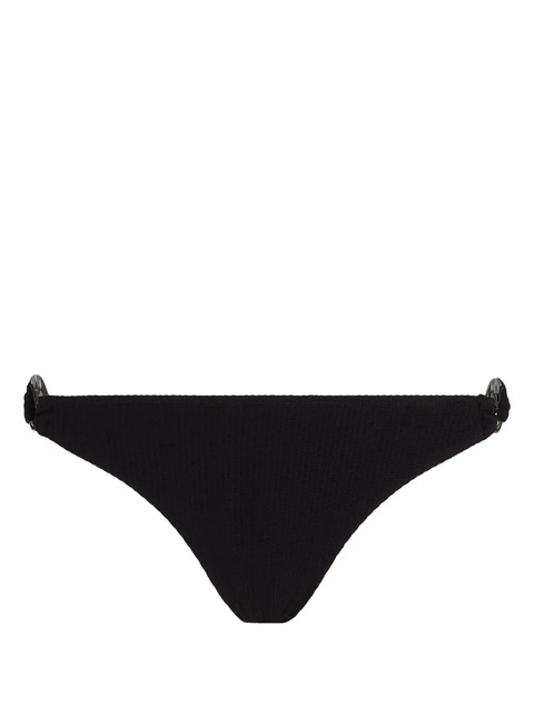 jet black stretch-design crinkled finish silver-tone hardware classic bottoms Be mindful to try on swimwear over your own garments.