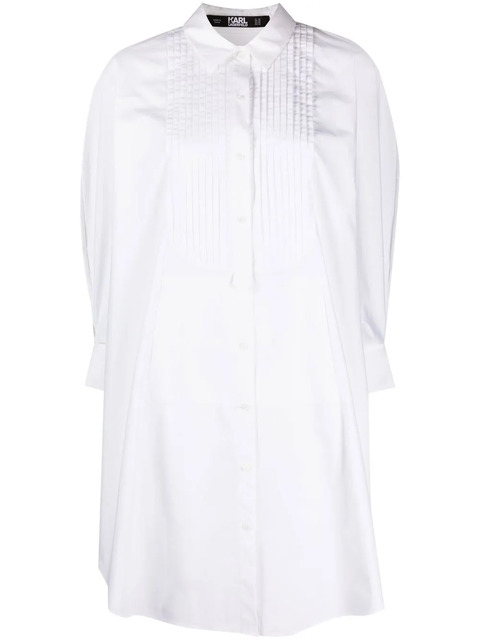 white organic cotton pleat detailing classic collar front button fastening long sleeves buttoned cuffs curved hem