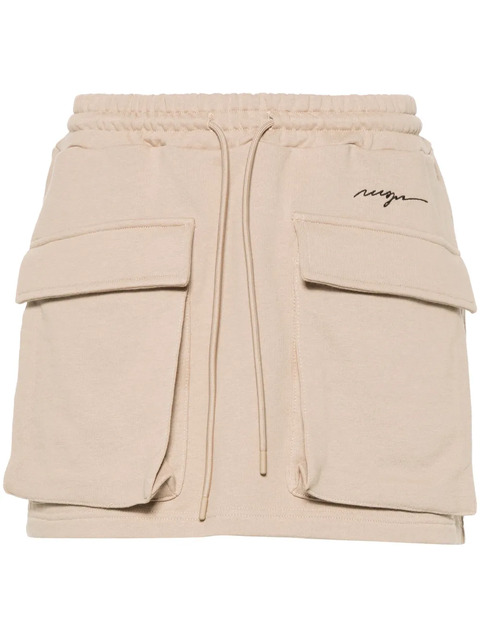 beige cotton jersey texture embroidered logo to the front slip pockets to the sides two front cargo pockets thigh-length elasticated drawstring waistband straight hem French terry lining