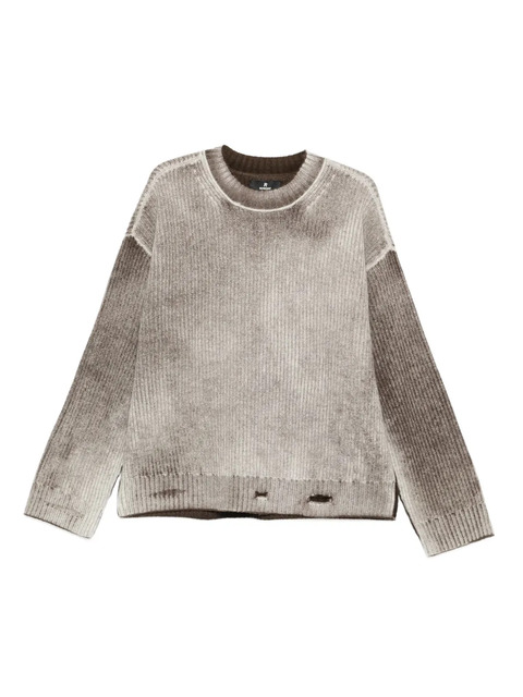 grey wool ribbed knit distressed detailing round neck long sleeves