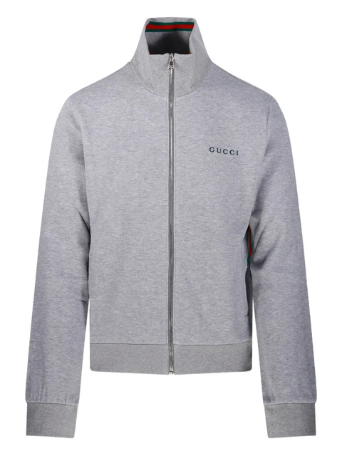 light grey funnel neck zip fastening logo detail ribbed hem ribbed cuffs