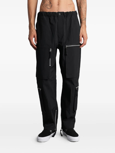 black elasticated waistband multiple pockets zip details silver-tone hardware straight leg