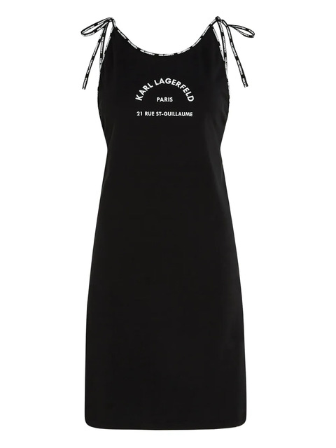 black/white organic cotton logo print to the front and rear round neck sleeveless tie-fastening straps U-back straight hem thigh-length
