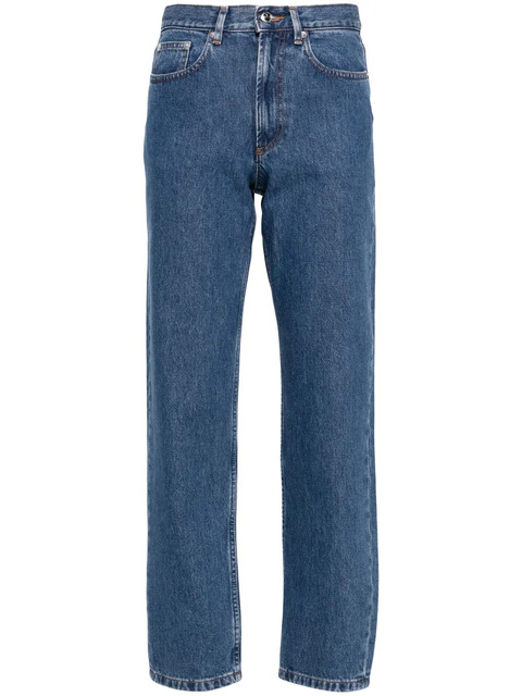 indigo blue cotton washed denim contrast stitching belt loops straight leg concealed fly and button fastening classic five pockets