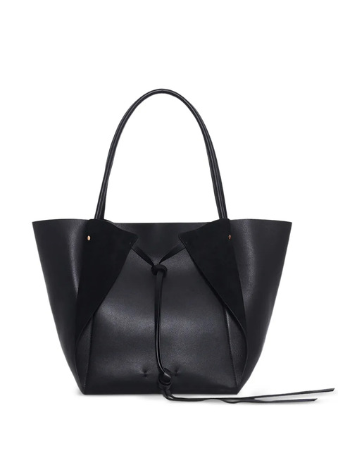 black leather panels top handle tie detail knot detail gold-tone hardware