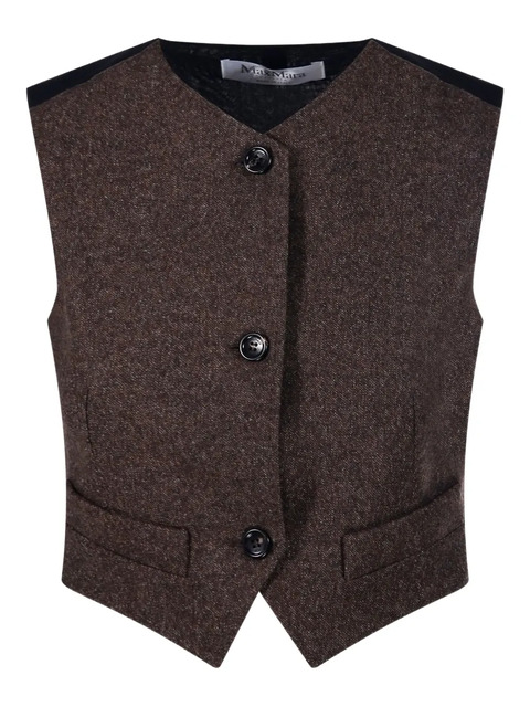 brown panelled design button fastening V-neck two front pockets adjustable back strap