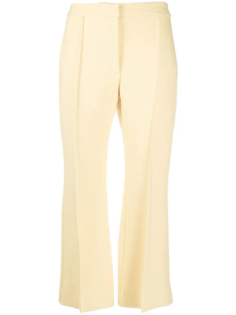 yellow virgin wool blend/cotton button fly fastening seam detailing two side inset pockets two rear jetted pockets cropped flared design