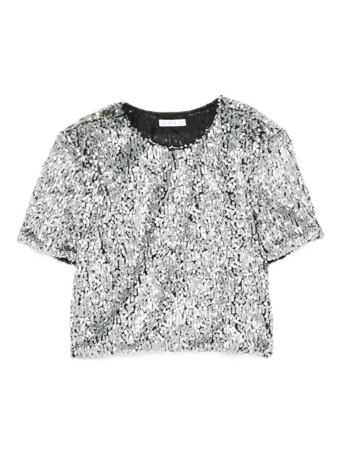 silver sequin embellishment short sleeves round neck