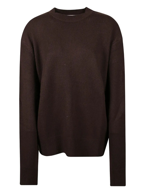 brown knit texture padded shoulders crew neck long sleeves ribbed hem